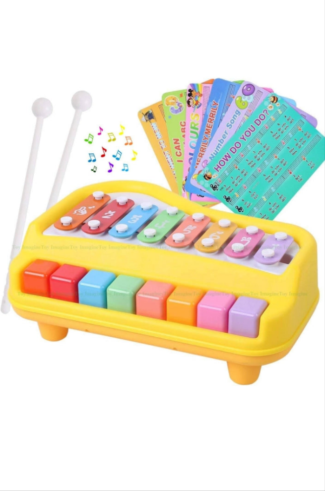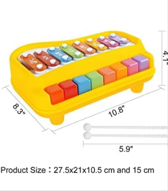 - 🧡2 in 1 Musical Instrument - Both a Piano and Xylophone, this Musical Instrument helps for toddlers learn and enjoy music through use of vivid colours that makes it easy for kids to recognize.